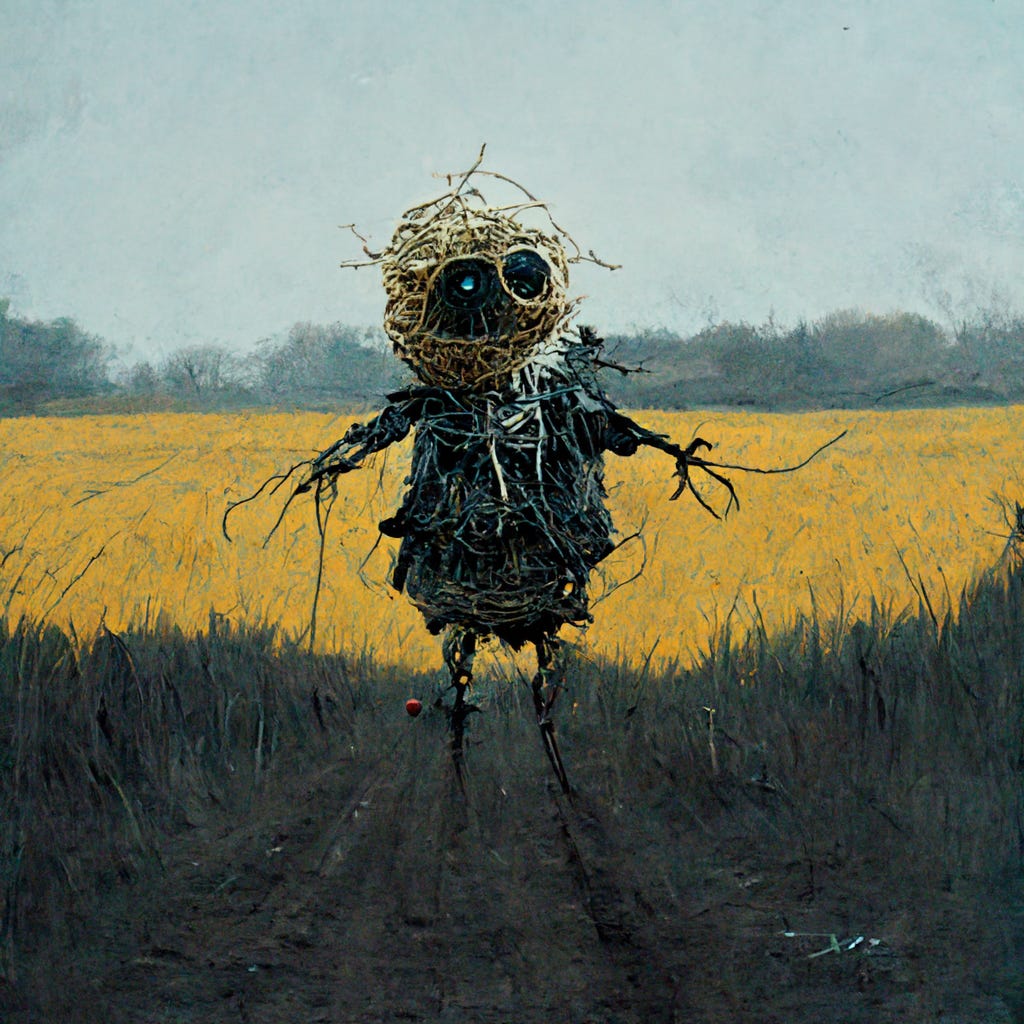 However, what Midjourney is doing is a step even further removed from plagiarism. Instead of a set of straightforward imitative instructions being given, stable diffusion creates a signal from Gaussian noise via complex probabilistic reverse engineering (ethical or not, this still impresses me as impossibly cool). Probalistically if such an image yet to exist were to be tagged with ‘bright sunny day’ then it would be likely that the upper quarter of the image would be blue; probabilistically if such an image were to be tagged with ‘impressionist’ then it would be likely that the colours would sort of swirl and merge together; probabilistically if such an image were to be tagged with ‘1880s’, ‘Provence’ and ‘male peasants’ then it would be likely that the peasnts pictured would be wearing blue smocks and fustian suits etc. etc. etc. etc. etc. Not that the AI is thinking in English language in the same way we do. Rather, it calculates upwards from latent space to pixel space what the dimensions of such an image should be (within a field of variation established by the user, which he/she can then further refine).